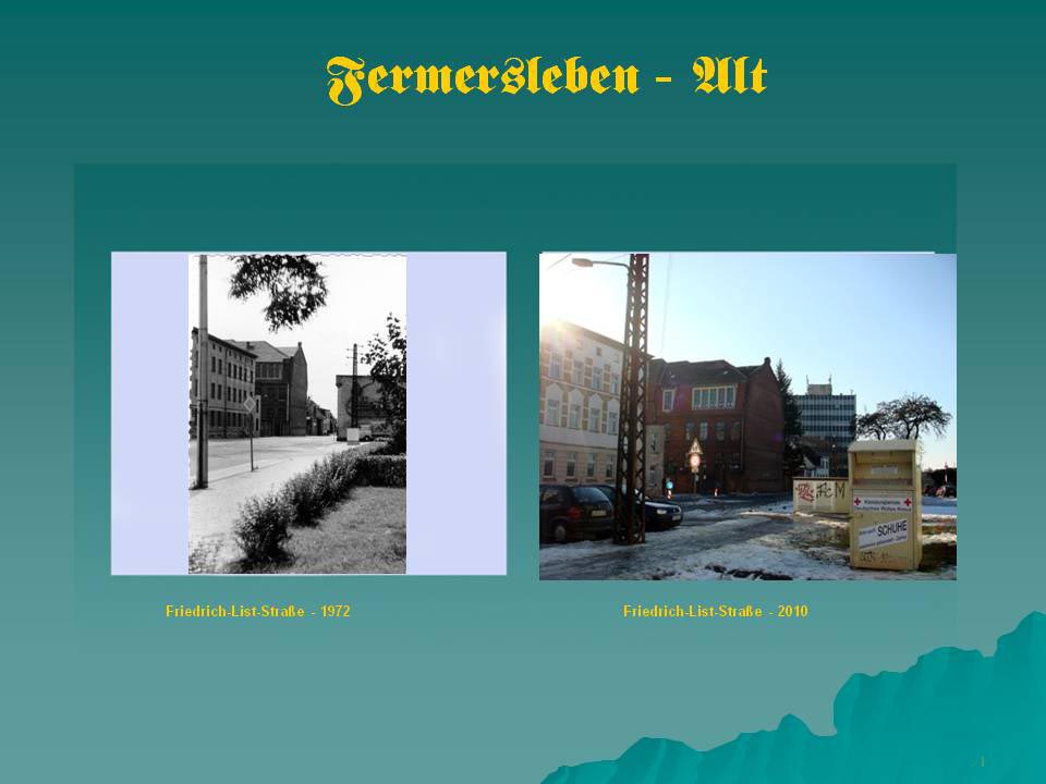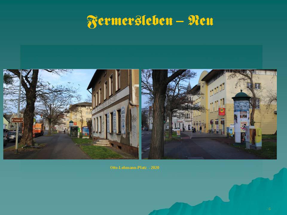Straße Al-Fermersleben am Otto-Lehmann-Platz ,früher Gemeindeplatz
